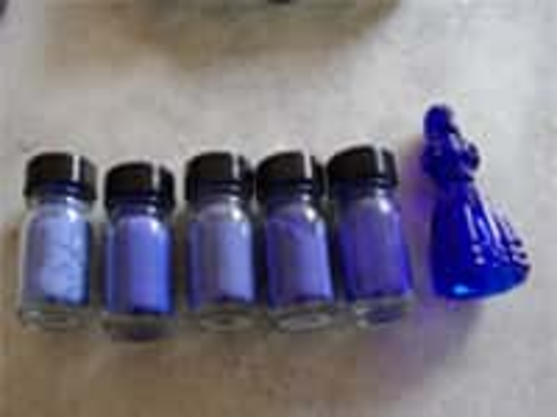 A pigment which is being comminuted has an altered colour, in contrast to the primary particle. This is due to the fact, that crystals because of their size, influence the transparency. The primary particle is therefore responsible of how we optically perceive it. Shown in the photo on the right, the intensity decreases towards the left – to the finer particles; therefore the finest share seems to be the lightest. The shares are: < 63 µm, 63 – 80 µm, 80 – 100 µm, 100 – 125 µm, 125 – 200 µm.