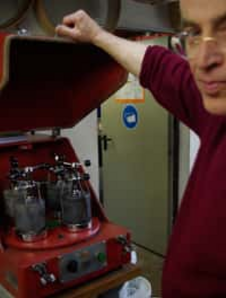 Dr. Kremer using the Planetary Mill PULVERISETTE 5